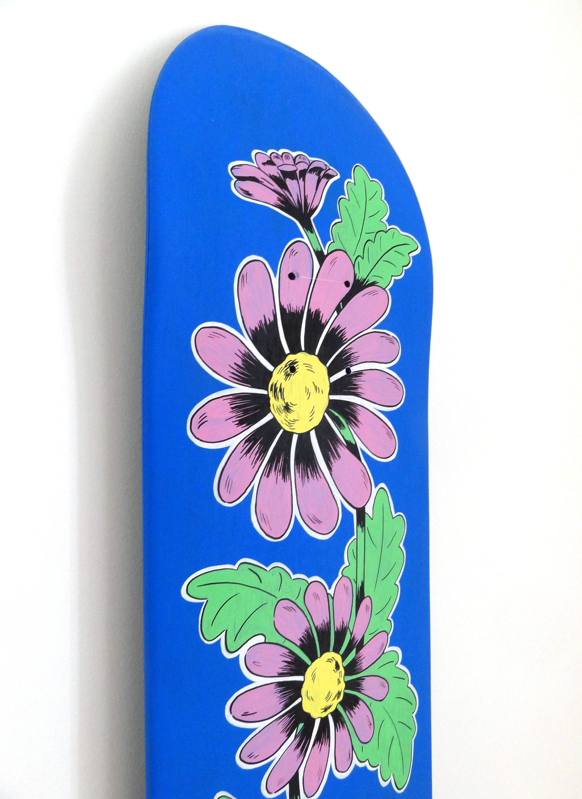 Depuis début 2024 je récupère des skateboards en fin de vie que je décape, que je ponce et que je personnalise selon mes envies à l'aide d'acrylique et de posca